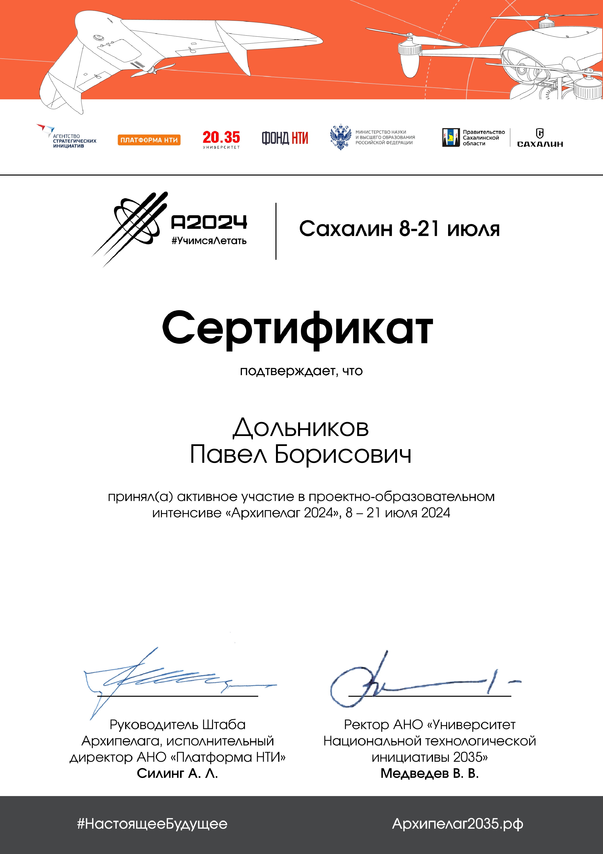 Проект отобран для участия в Национальном сетевом акселераторе (НСА) с 10 по 21 июля в очном формате в рамках Архипелага 2024 в г. Южно-Сахалинске.