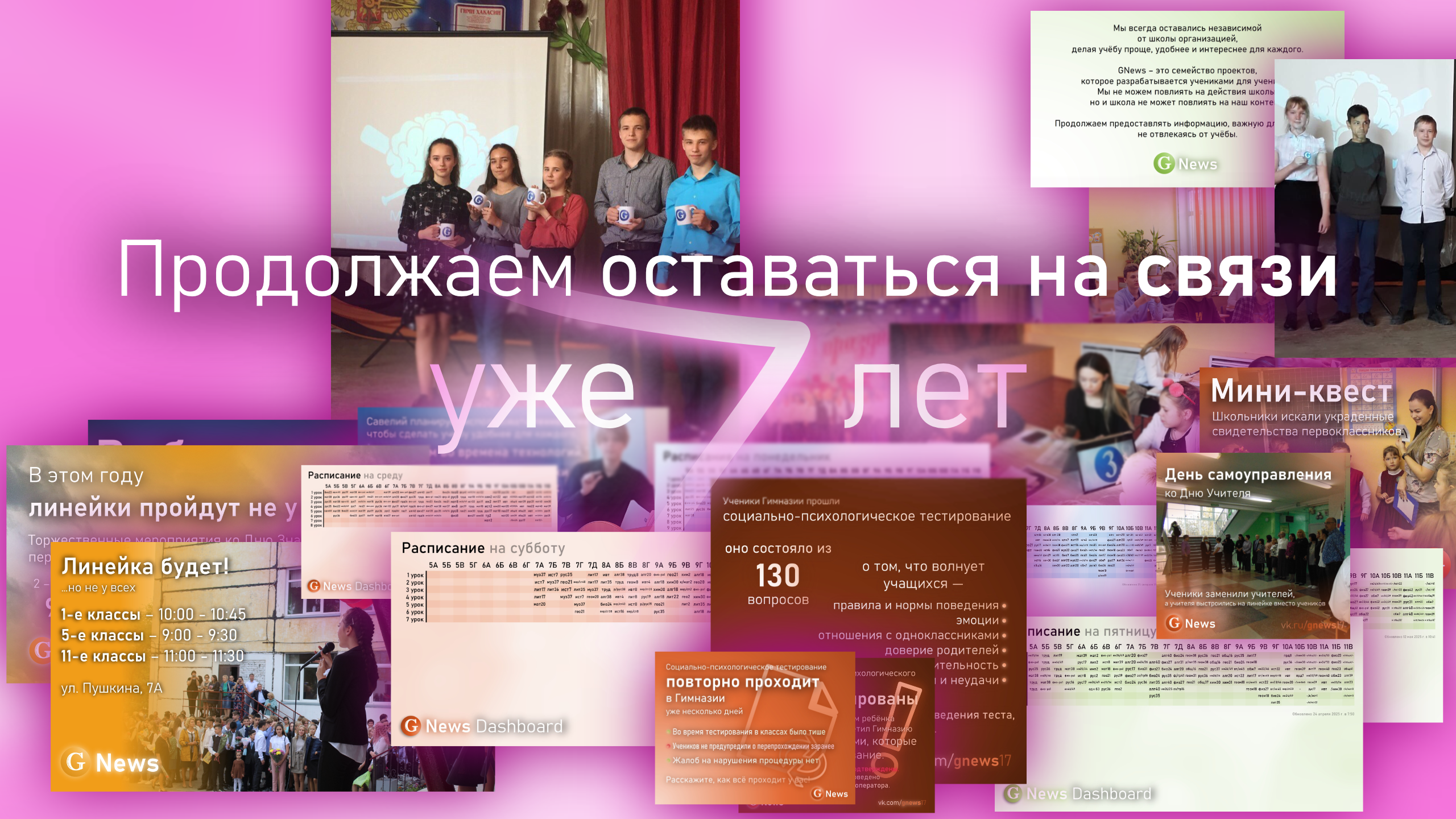 Проекту GNews — 7 лет. В 2018 году он был создан как школьное сообщество новостей. Позднее он перерос в большую экосистему IT-проектов, которые делают учёбу удобнее для каждого — теперь в школах по всей России. Показываем, как мы продолжали оставаться на связи — уже 7 лет — в видеоролике по ссылке.