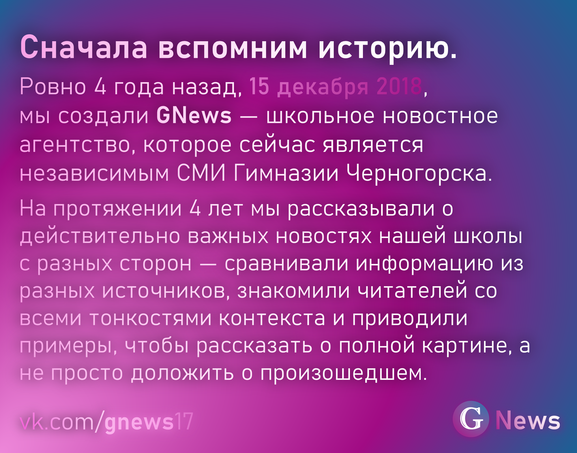 Познакомьтесь с историей нашей команды и проектов: от простого школьного сообщества до большой экосистемы IT-решений. В новой публикации GNews Blog рассказываем про наш путь и делаем тизер большого обновления GNews Dashboard к нашему 5-летию.