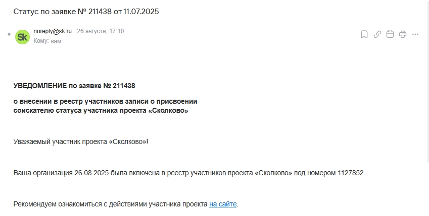 В ответном письме АНО "Агентство по технологическому развитию" отмечает наличие у нашей команды "Ваши высокие компетенции в области данного направления" и предлагает "Вас принять участие в конкурсном отборе...".