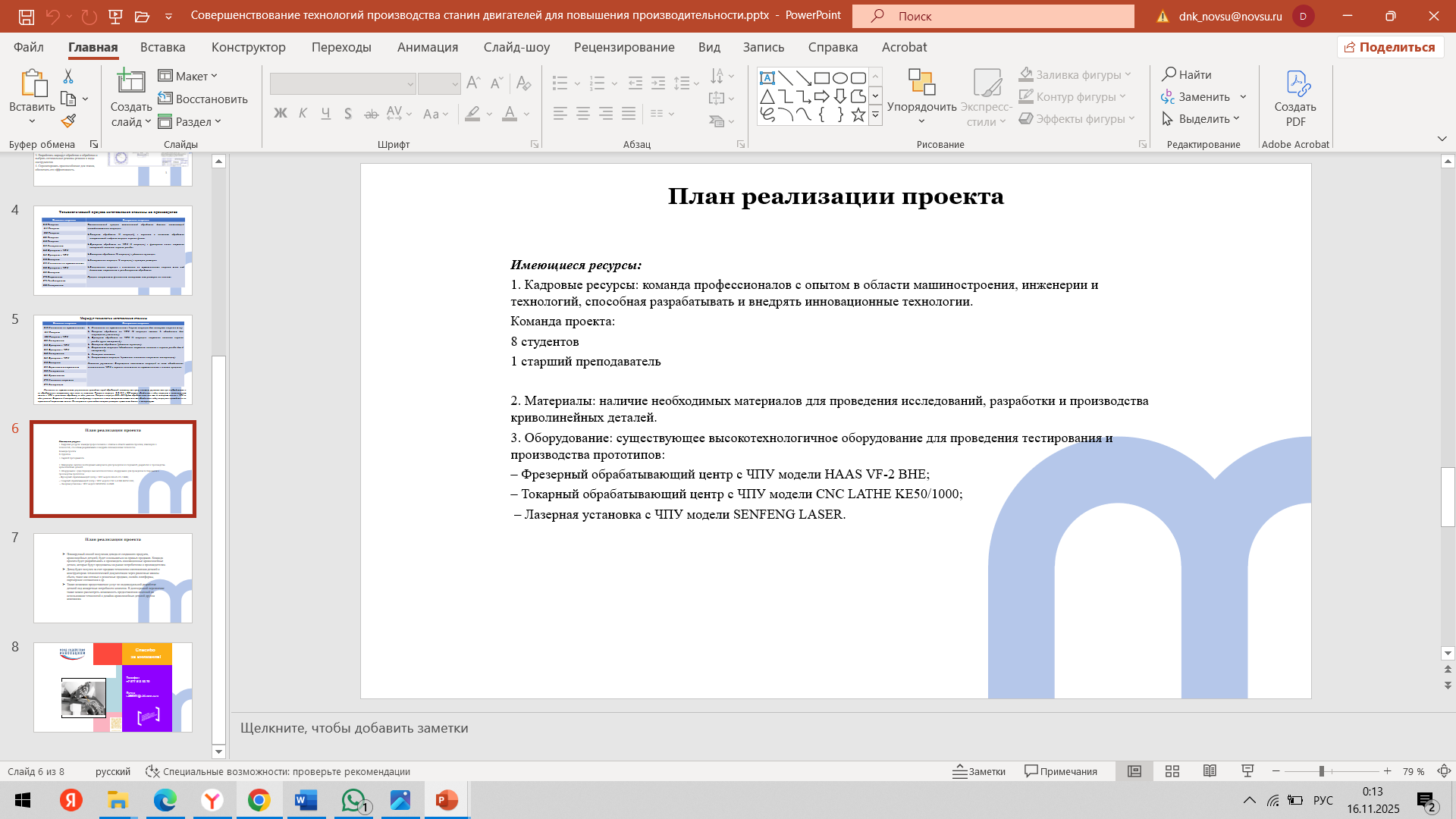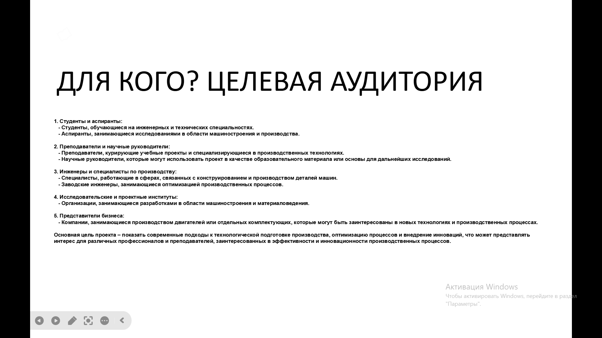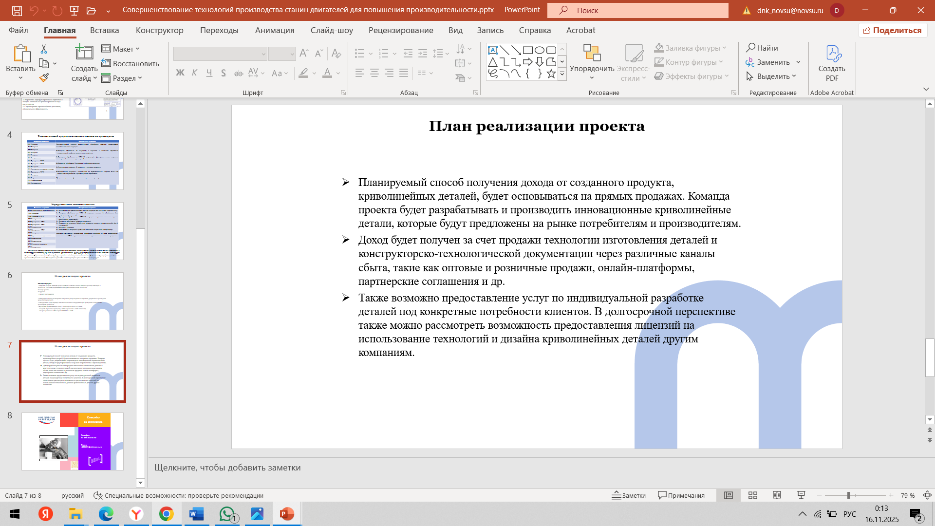 Состоялась 4-я встреча команды с трекером Мырцевым Александром Николаевичем и наставником Ивановой Ольгой Петровной. Наставник продолжил проектную работу по календарному плану, с командой провели подготовку и обсуждение материалов для предзащиты. Работали над презентацией. Утвердили презентацию (проблему, идею, концепцию, актуальность, аналогов/конкурентов, решение/ожидаемый результат). Ольга Петровна поставила задачи на предзащиту. Александр Николаевич провел совместную работу с командой стартап-проекта по корректировке идеи проекта и актуализации ключевых показателей стартап-проекта с учетом возможных запросов индустриальных партнеров. Нацелил команду на успешную предзащиту стартапа.