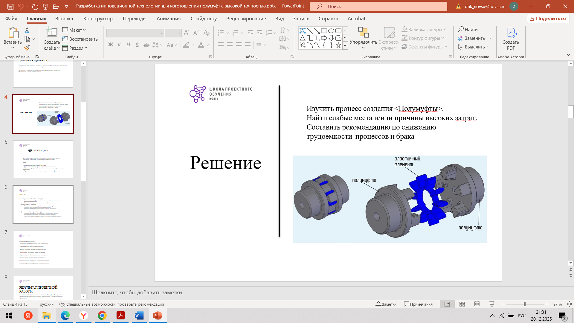 Разработка инновационной технологии для изготовления полумуфт с высокой точностью
