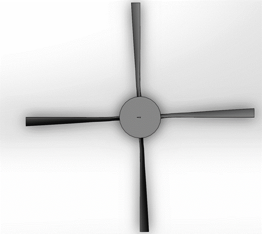 Разработана 3-D модель винта изменяемого шага с использованием программы «Solid Works», представленная в прикрепленном файле. Режим 1: Фиксированный шаг для стабильных нагрузок. Режим 2: Автофлюгирование — автоматическая корректировка угла атаки под набегающий поток.